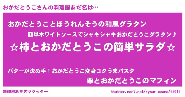 | 胡散臭い通販商品みたいなあだ名 | 『信頼と実績のサプリメント…その名も「おかだとうこ」』 |