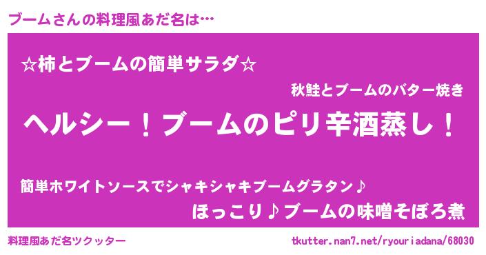 | 男性向けラノベタイトル風あだ名 | 『Re:ブームから始める異世界生活』 |