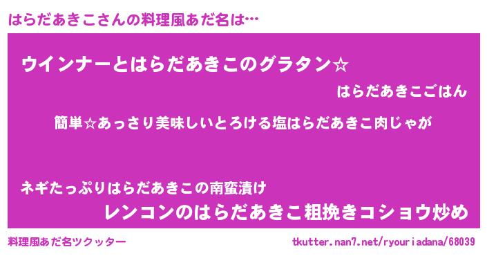 | 意味不明あだ名 | 『永久保存はらだあきこ』 |