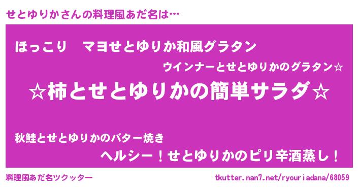 | 意味不明あだ名 | 『住所不定無職せとゆりか(98歳)』 |