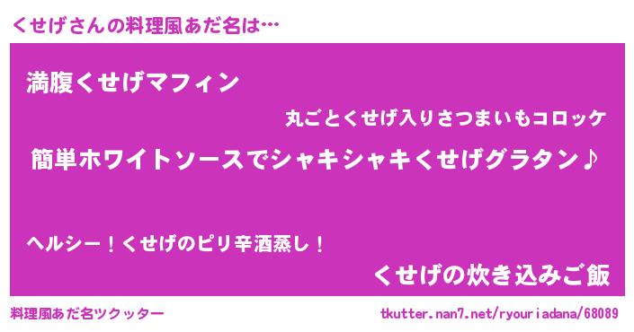 | 女子向けラノベタイトル風あだ名 | 『くせげ様がみてる』『闇のくせげ』 |