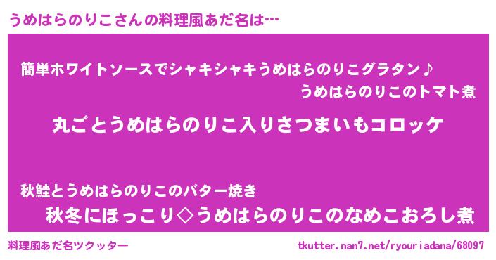 | ポケモン風あだ名 | 『ウーメイ』『ヒウメハラノリコ』 |