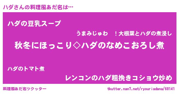 | ピコ太郎風あだ名 | 『ハダ八郎』『ピハ六郎』『ハハ太郎』 |