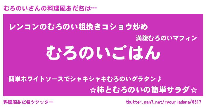 | 意味不明あだ名 | 『しいたけ科むろのい属』『自称むろのい』 |