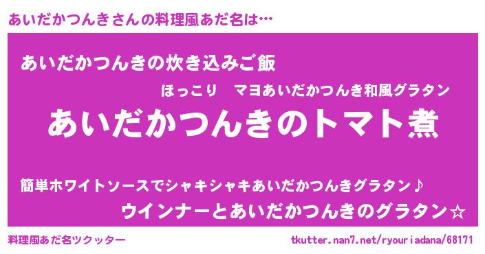 | 男性向けラノベタイトル風あだ名 | 『おまえをオタクにしてやるから、俺をあいだかつんきにしてくれ! 』 |