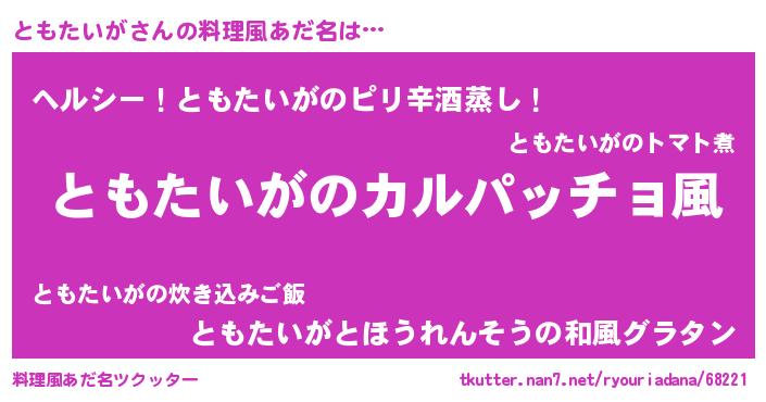 | 意味不明あだ名 | 『住所不定無職ともたいが(91歳)』 |