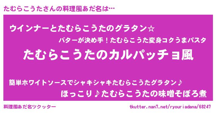 | 意味不明あだ名 | 『住所不定無職たむらこうた(6歳)』 |