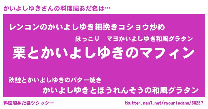 | ヘコむあだ名 | 『かいよしゆき(笑)』『かい太郎』 |