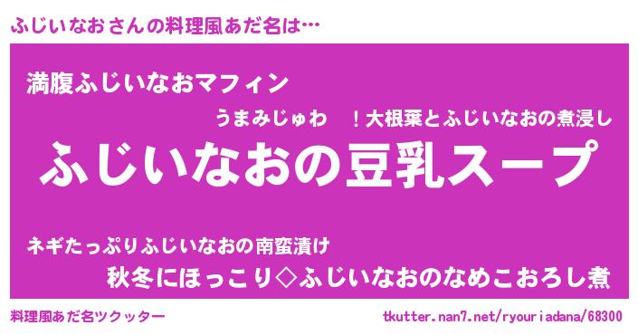 | 胡散臭い通販商品みたいなあだ名 | 『信頼と実績のサプリメント…その名も「ふじいなお」』 |