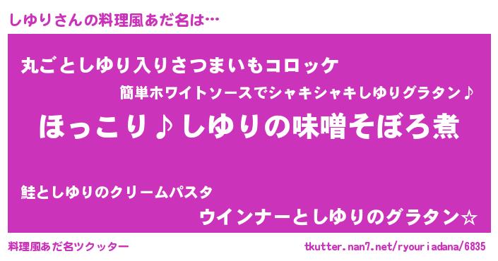 | ヘコむあだ名 | 『しゆふぇ~』『豆乳』『しゆっ子』 |