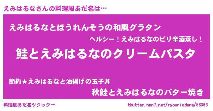 | ヘコむあだ名 | 『えみはるな(爆)』『えみふぇ~』 |