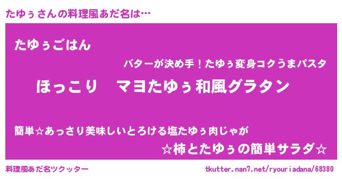 | ヒーロー風カッコイイあだ名 | 『仮面タユダー』『正義の使者たゆぅ』 |