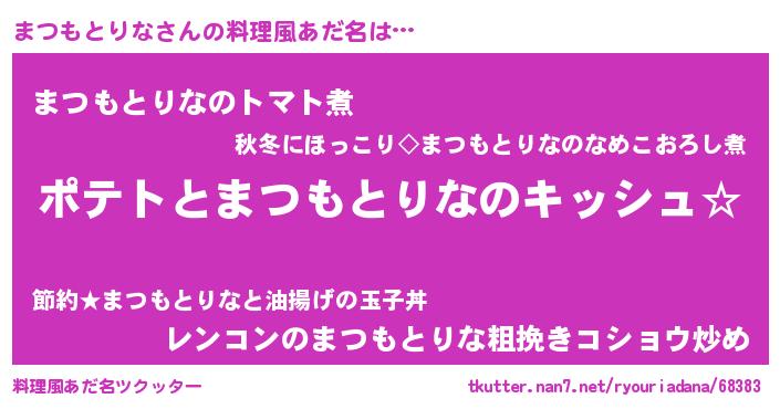 | 意味不明あだ名 | 『とにかく怪しいまつもとりな』 |