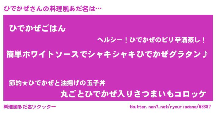 | 男性向けラノベタイトル風あだ名 | 『ひでかぜの嫁は女の子じゃないと思った?』 |