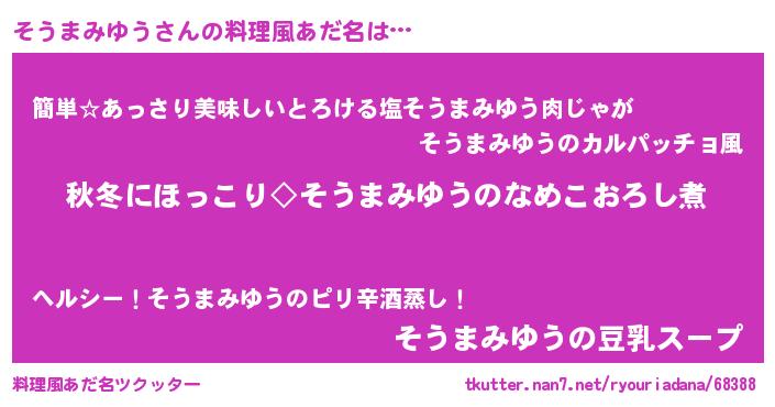 | ヘコむあだ名 | 『そうまみゆう(笑)』『そうっちょ』 |