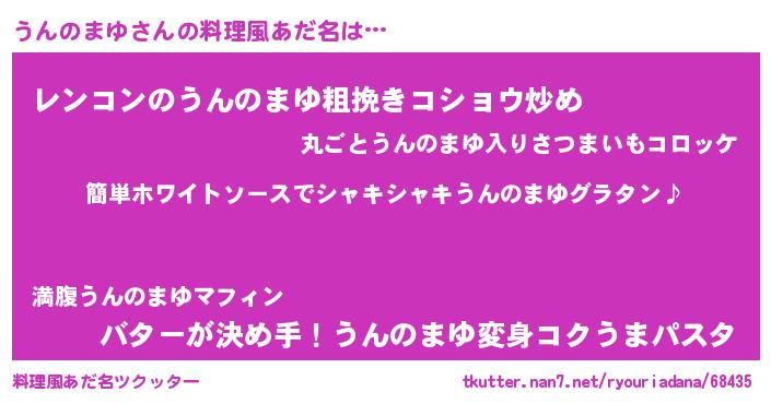 | 女子向けラノベタイトル風あだ名 | 『うんのまゆ様がみてる』 |