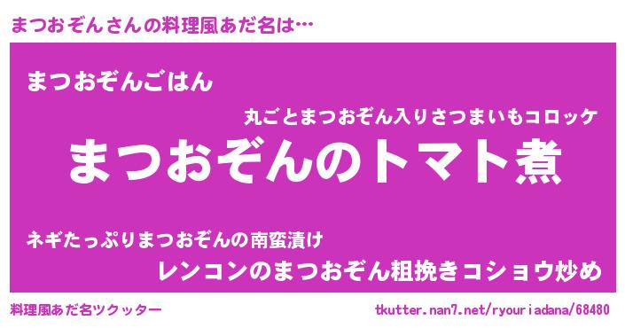| 男性向けラノベタイトル風あだ名 | 『おまえをオタクにしてやるから、俺をまつおぞんにしてくれ! 』 |