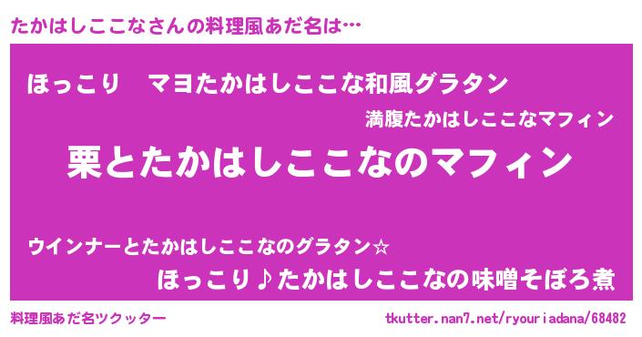 | ヒーロー風カッコイイあだ名 | 『仮面タカダー』『ネオタカハシココナ』 |