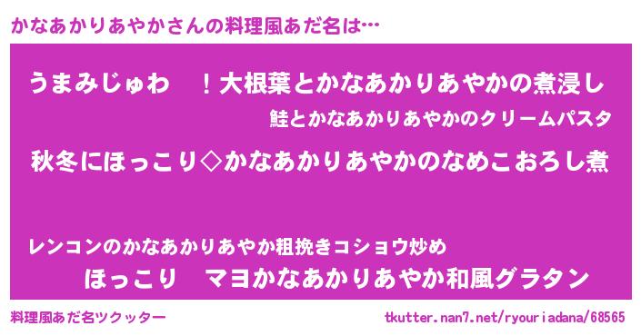 | 意味不明あだ名 | 『かなあかりあやかフォーエバー』 |