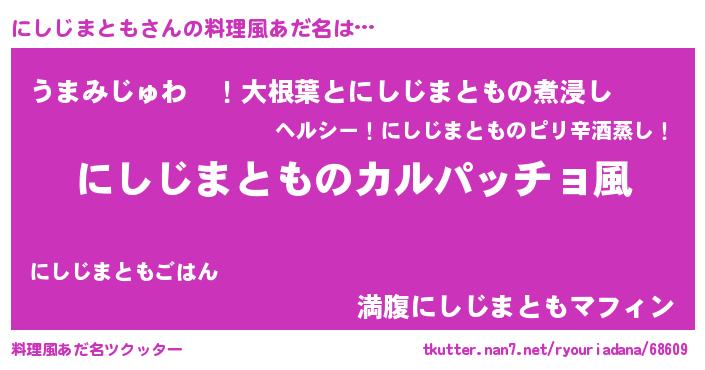 | 女子向けラノベタイトル風あだ名 | 『にしじまともが死なない童話 林檎のにしじまともの診療簿』 |