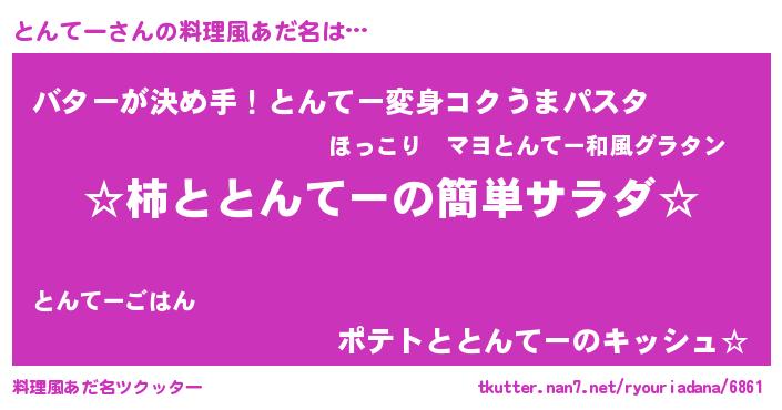 | 男性向けラノベタイトル風あだ名 | 『緋弾のトンテー』『トンテースレイヤー』 |