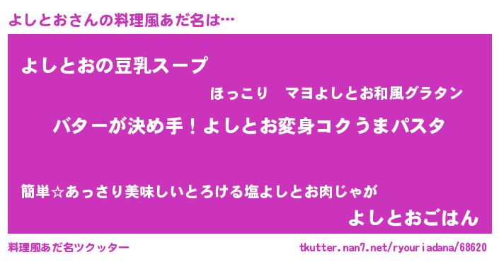 | 欧米人風あだ名 | 『ダニエルよしとお』『ウサインよしとお』 |