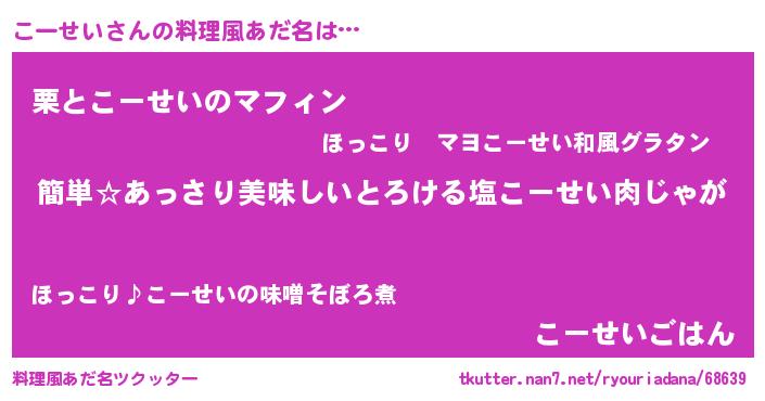 | 可愛いあだ名 | 『こーせいママ』『こーぷりん』 |