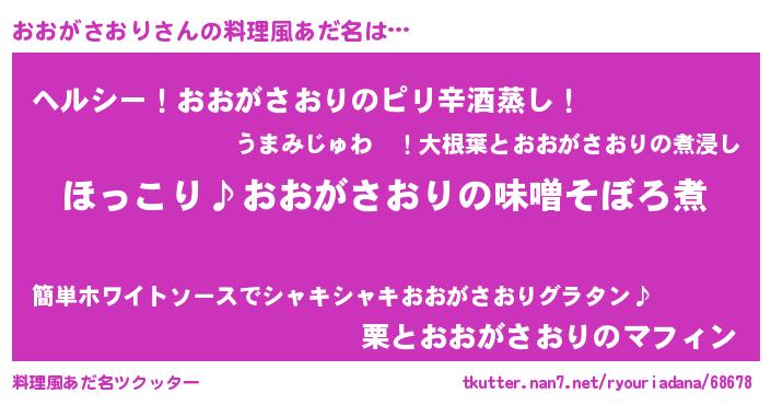 | 女子向けラノベタイトル風あだ名 | 『(仮)おおがさおりのやんごとなき事情』 |