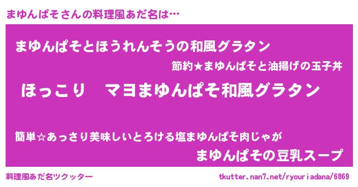 | ヘコむあだ名 | 『まゆぷりん』『まゆっふぃ~』 |
