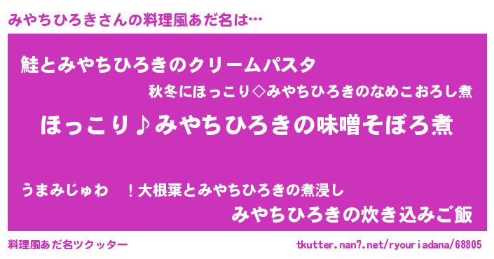 | ヒーロー風カッコイイあだ名 | 『スーパーミヤチヒロキ』『銀牙騎士ミヤ』 |