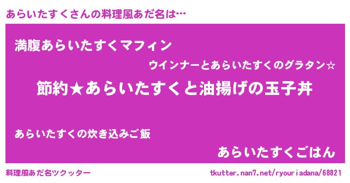 | 欧米人風あだ名 | 『マイケルあらいたすく』 |