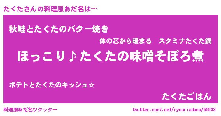 | ヘコむあだ名 | 『たくふぇ~』『たくた(苦笑)』 |