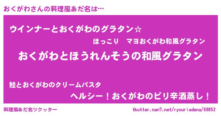 | 意味不明あだ名 | 『もやし科おくがわ属』『自称おくがわ』 |