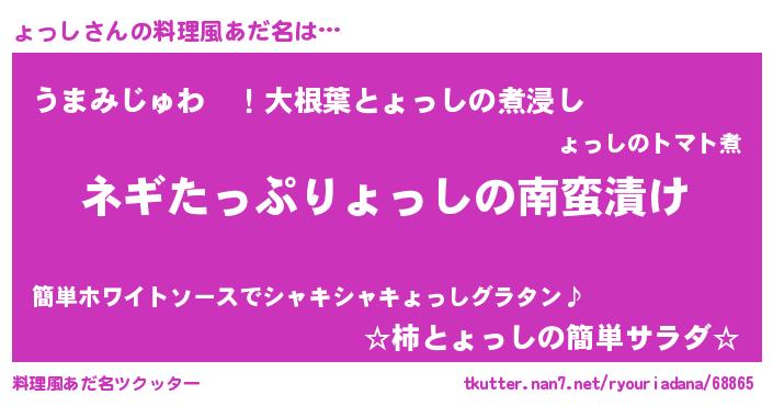 | ポケモン風あだ名 | 『ョッチュウ』『ョッシダネ』 |