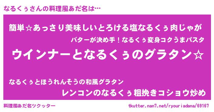 | ヘコむあだ名 | 『なまこ酢』『なるくぅ(笑)』 |