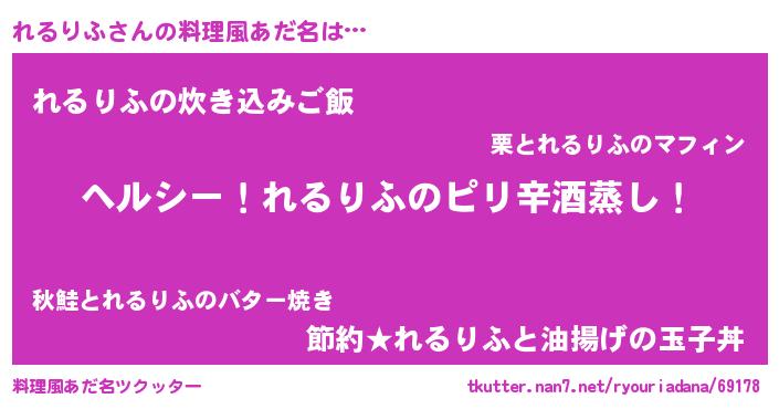 | 意味不明あだ名 | 『自称れるりふ』『ペロリンれるりふ』 |