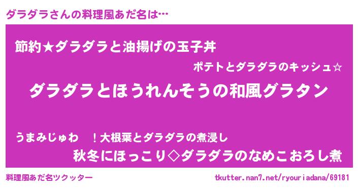 | ヒーロー風カッコイイあだ名 | 『スーパーダラダラ』『銀牙騎士ダラ』 |