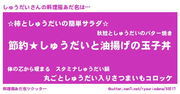 | 男性向けラノベタイトル風あだ名 | 『しゅうだいの憂鬱』『緋弾のシュウダイ』 |