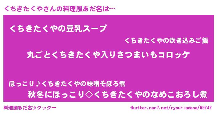 | 意味不明あだ名 | 『住所不定無職くちきたくや(68歳)』 |