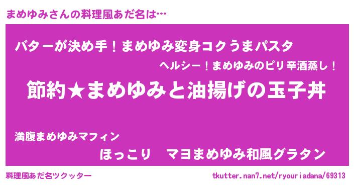 | 意味不明あだ名 | 『ペロリンまめゆみ』『自称まめゆみ』 |