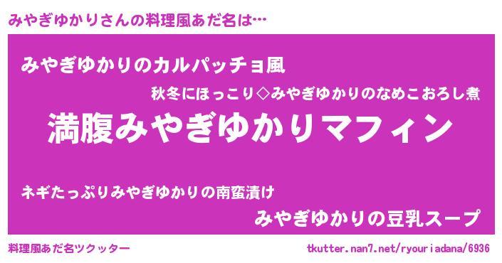 | 女子向けラノベタイトル風あだ名 | 『異世界で失敗しない100のみやぎゆかり』 |