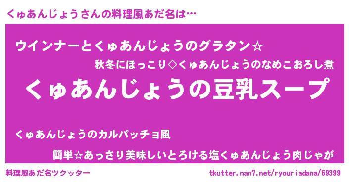 | 胡散臭い通販商品みたいなあだ名 | 『信頼と実績のサプリメント…その名も「くゅあんじょう」』 |
