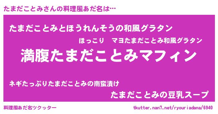 | ヘコむあだ名 | 『たまだことみ(笑)』『たまを』 |