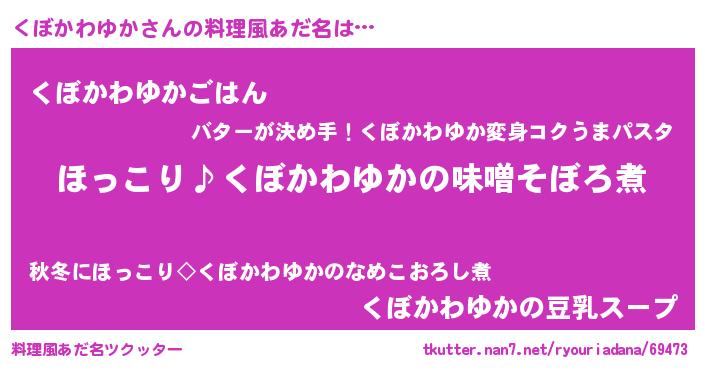 | 女子向けラノベタイトル風あだ名 | 『(仮)くぼかわゆかのやんごとなき事情』 |