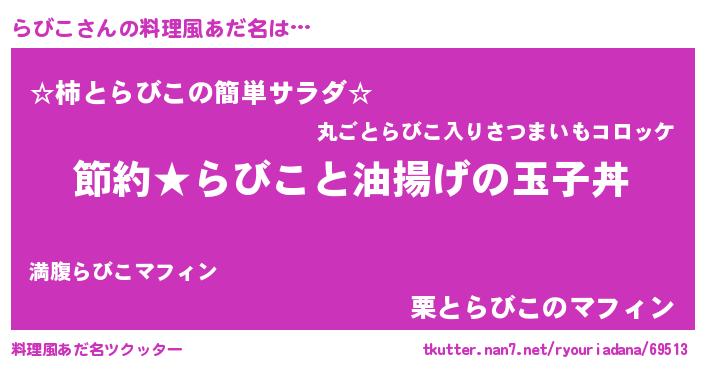 | ヘコむあだ名 | 『らびにー』『らびこ(笑)』『豆乳』 |