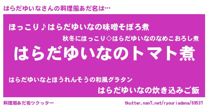 | 男性向けラノベタイトル風あだ名 | 『おまえをオタクにしてやるから、俺をはらだゆいなにしてくれ! 』 |