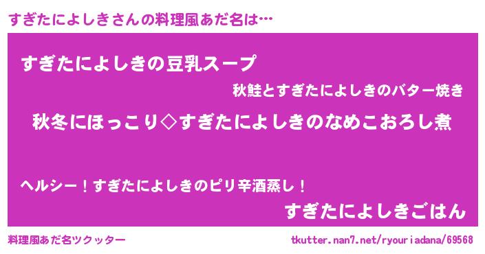 | 男性向けラノベタイトル風あだ名 | 『すぎたによしきに滅ぼされるだけの簡単なお仕事です』 |