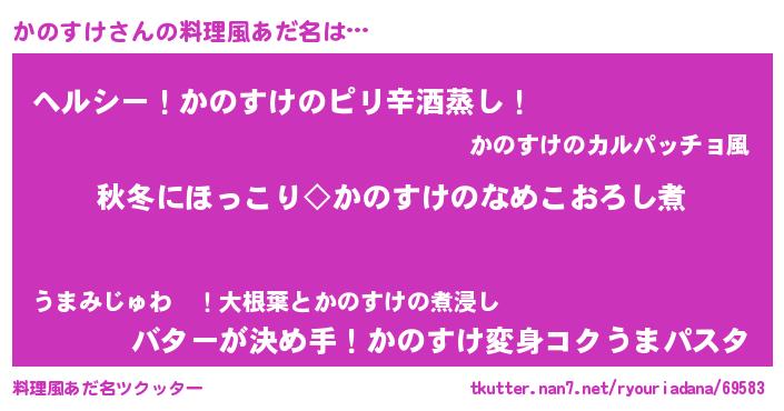 | 男性向けラノベタイトル風あだ名 | 『かのすけに滅ぼされるだけの簡単なお仕事です』 |