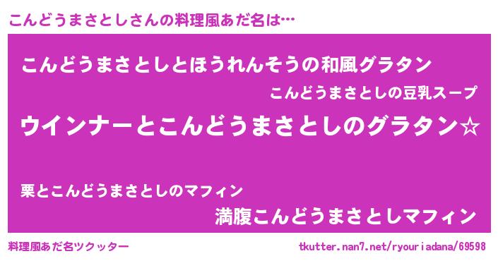 | 肩書あだ名 | 『こんどうまさとし総理大臣』 |