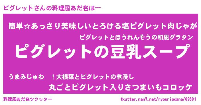 | 女子向けラノベタイトル風あだ名 | 『ピグレットは平凡を望む』 |